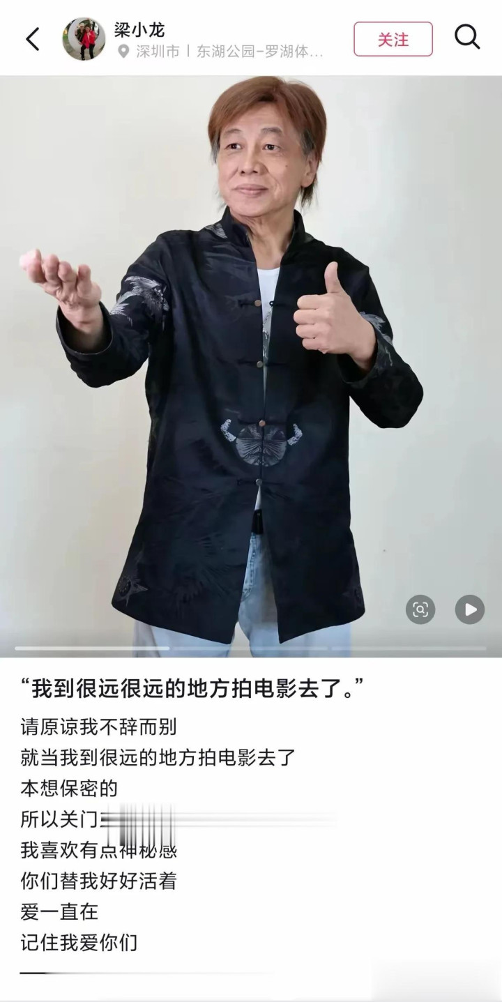 结尾 血战平安大厦时,梁小龙不过20多岁 2023年回忆讲述这段往事时,他已经70多岁,这件事过去快50年了 而现在,他已于1月14日去了很远很远的地方拍电影去了…… |