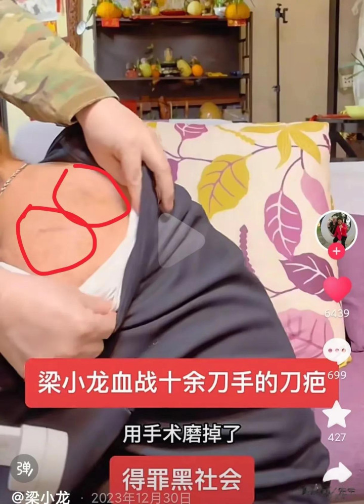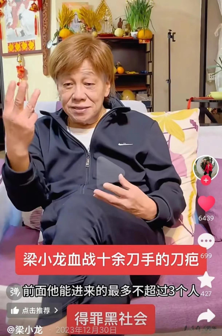 最后他终于杀出重围,跑到大街上呼救,歹徒们见势不妙才慌忙逃跑 送到医院后,梁小龙后背的伤口还缝了11针,这道疤也成了他一辈子的勋章 晚年时候,他在短视频里还特意指给粉丝看