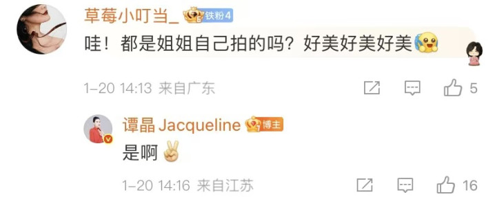 谭晶晒出的雪天美图惊艳了网友,问她是不是自己拍的,好美好美。谭晶非常骄傲的回应了网友,在拍照构图这一方面谭晶还是很有审美。