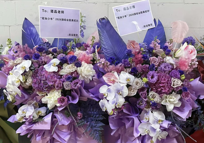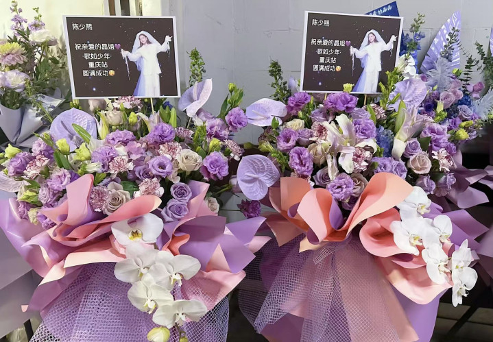 谭晶在重庆的演出会非常成功,圈内好友送了好多花篮。其中就有周深的,龙梅子和儿子陈少熙是分开送的花篮。龙梅子送花篮挺意外的,两位的曲风不一样,谭晶唱的是民族、通俗、美声,龙梅子唱的是通俗和流行。最意外的是学昆曲的陈少熙也送花篮,只能说谭晶和龙梅子是很要好的关系,陈少熙跟谭晶感情也很好。