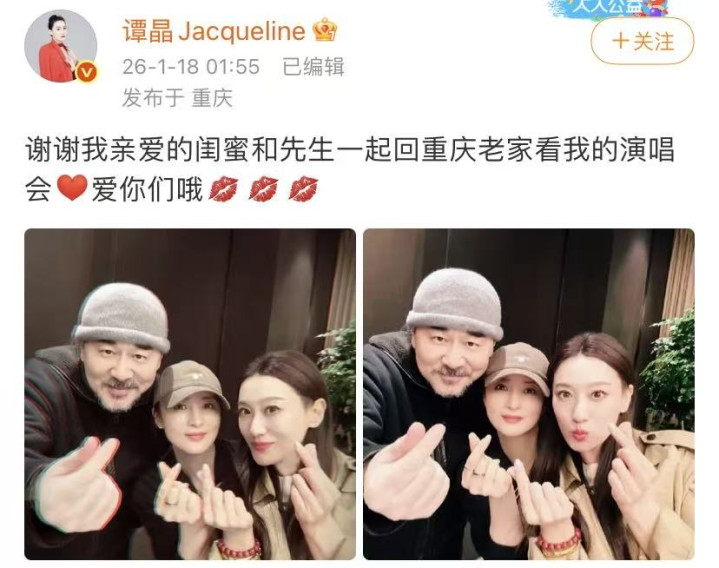18号谭晶在重庆开演唱会,她晒了两张图,大家才知道原来她和蒋勤勤是20年的闺蜜。姐妹俩感情非常好,蒋勤勤是特地带着陈建斌飞回重庆。