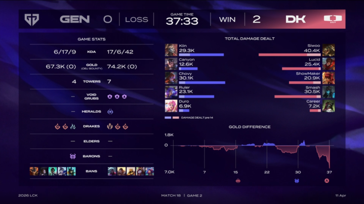 LCK诠释考虑再次全错 这仍是不知谈是本年第几次全错了,LCK参加S16之后,爆冷局出现的频率之高可谓是历史之最。至此DK亦然终于放手了对战GenG的22连败,揭开了新的篇章。