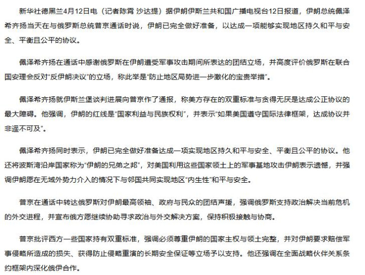 普京关节时刻奉上宽心丸 就在好意思军落拓渲染搞紧闭,试图在策略上并立孤身一人伊朗的时候,时局蓦地迎来了一个重磅滚动。 4月12日,也便是洽商刚崩盘的节骨眼上,俄罗斯总统普京躬行抄起电话,打给了伊朗总统。