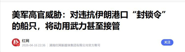 我个东谈主认为,这场洽商从一启动,就注定是一场莫得成果的涎水仗,谈崩只是旦夕的事。 好意思军紧闭虚张气势 洽商桌上没占到低廉,好意思方立马就冲突了,平直掀了桌子。 4月13日上昼10点,好意思军中央司令部准时拉响警报,莫得涓滴暧昧,平直对外发布了紧闭告示,明确要对扫数收支伊朗口岸的船只,施行全面紧闭,半分简陋的余步都没留。