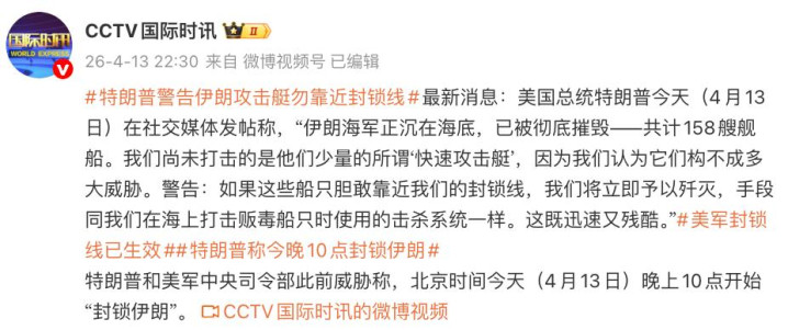 比如,伊拉克那边更夸张,库存的原油,只够撑两天。而沙特的四个关节储罐,还是透顶装满了,连一滴油都装不下了。这意味着什么?这意味着留给全球经济喘气的期间,还是按小时倒数了。 我个东谈主认为,这场危急,早就不是好意思伊两个国度之间的意气之争了。它通过动力价钱的暴涨,正在对全球供应链,发起无诀别的挫折。哪怕未来好意思伊就捏手言和,这种因为斗争张皇带来的油价溢价,也需要几个月,以致更长的期间,才能冉冉消化。 参考贵寓: 《2026年4月13日酬酢部发言东谈主郭嘉昆专揽例行记者会》,中华东谈主民共和国酬酢部 《酬酢部发言东谈主就中东时局答记者问》,新华社 《伊朗总统与普京通话》,腾讯新闻 《好意思军公布“海上紧闭”细节》,新浪财经 《全球动力“动脉”中断激发阛阓悠扬》,工东谈主日报 《动力外运“咽喉”受阻 油气供应远景难料》,中国石油新闻中心 《国外研选 高盛警戒风险未散》,东方资产网 《好意思伊洽商破碎 国际油价暴涨、金价下挫》乐鱼体育,新浪财经 开云体育(中国)官方网站 |