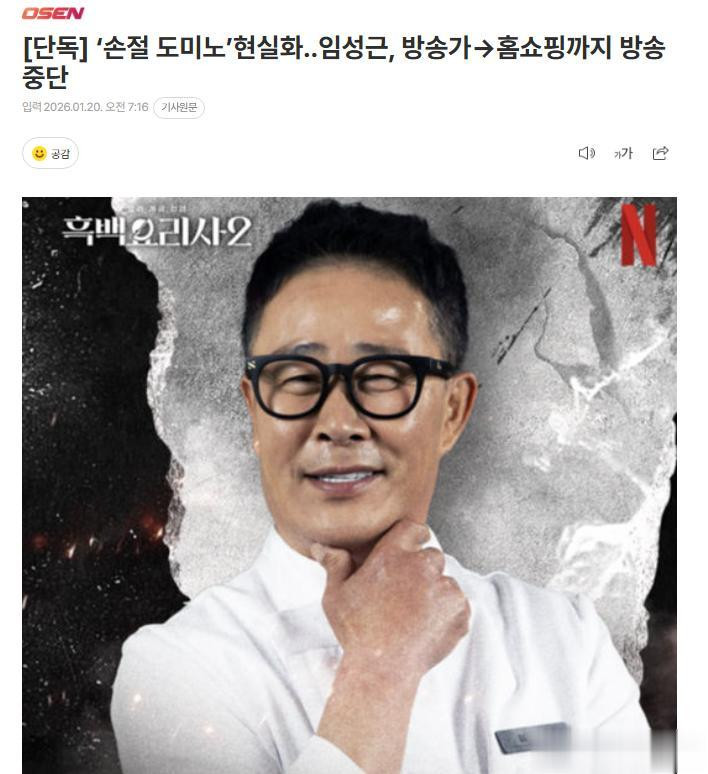 JTBC方面也表示:“原定于2月录制的《认识的哥哥》中林成根的出演部分已被取消。”不过,原定一同出演的其他厨师车尚宪、中式魔女、尹周模等将按计划进行拍摄。KBS方面也正式取消了林成根厨师的出演安排,《新品上市便利餐厅》方面则表示:“原本在协商拍摄事宜,现已取消。” {jz:field.toptypename/}MBC方面则持观望态度。对于已完成录制、即将于本月24日播出的《全知干预视角》,相关负责人表示:“目前正在就当前情况进行讨论”;《闲着干嘛呢?》方面解释称:“林成根厨师的出演并非已确定事项,拍摄也未进行。”据悉,网络综艺《Salon Drip》和SBS《同床异梦2-你是我的命运》方面也仍在就是否出演进行商讨。