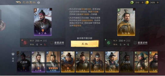 武将培养方面,这游戏降低了阵容试错成本。武将等级无损置换,战法重置仅耗铜币。在传统SLG里,换个武将或者重置战法可能要付出很大代价,比如浪费大量资源或者时间。但在《三国:谋定天下》,大家可以大胆尝试不同的阵容组合,不用担心浪费资源。很多新手玩家一开始不知道怎么搭配阵容,就通过不断尝试,最后找到了适合自己的阵容。