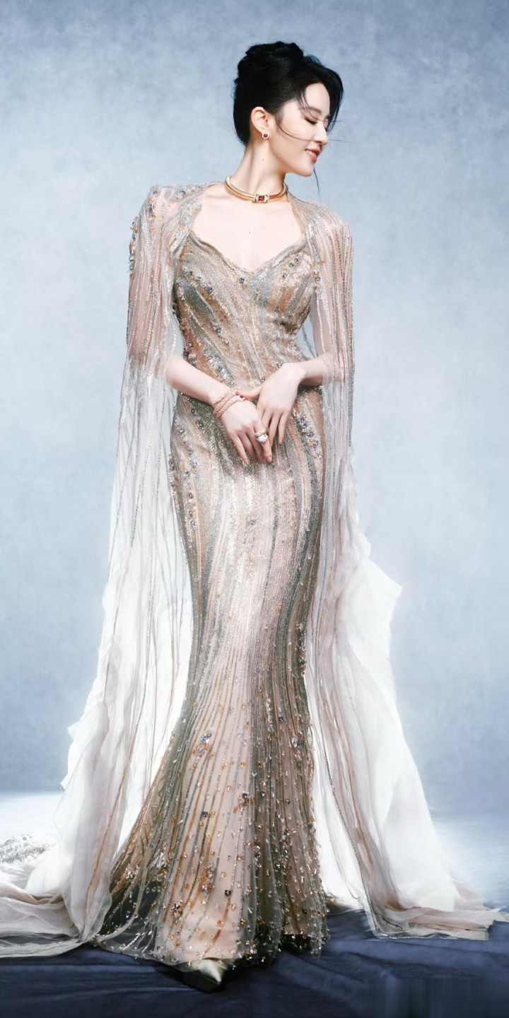 刘亦菲一袭鎏金渐变设计的高定礼服惊艳亮相,直接化身“鎏金人鱼神女”,高级感直接拉满,这造型当壁纸都美炸了!