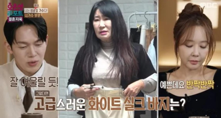 真正引发现场震惊的,是接下来的一幕。 安福熙提出可以穿一条白色丝质长裤作为折中方案,没想到丈夫却脱口而出:“剪掉吧。”他坚持要求将裤子剪到膝盖以上,甚至明确表示“像热裤一样穿才好看”,完全无视当天的天气条件。 当时正值寒冬,室外气温已降至零下10度。演播室现场的其他嘉宾听到后忍不住插话,直言“这种天气穿热裤太夸张了”,语气中满是担忧与不解。