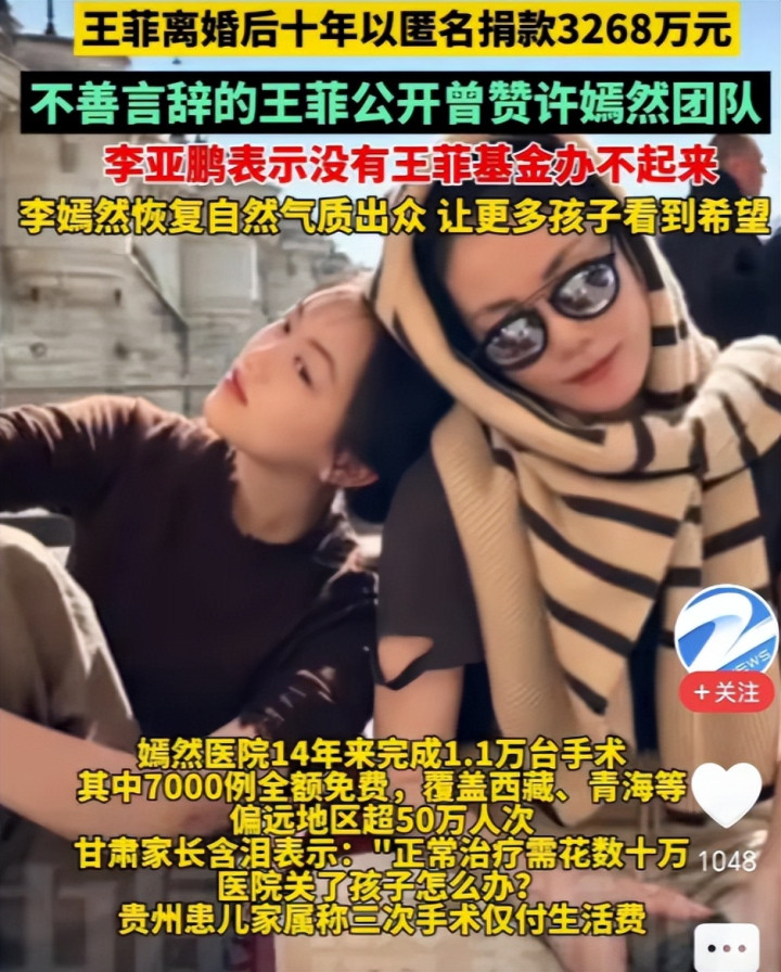 1月20日,王菲的捐款消息曝光。 原来她从2013年离婚后,连续十年匿名向嫣然天使基金捐款,累计3268万。