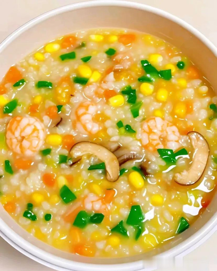 属目作念法 1. 小米淘洗干净,浸泡10分钟;南瓜去皮去瓤,切小块;红枣、枸杞洗净。 2. 砂锅中加水烧开,放入小米,小火煮20分钟至小米吐花。 3. 放入南瓜块、红枣,不竭煮15分钟,用勺子将南瓜压碎,让粥更浓稠。 4. 加枸杞、冰糖调味,煮5分钟即可出锅。 功效小贴士 南瓜补中益气、保护胃黏膜,小米健脾养胃,leyu是经典的养胃粥,口感绵密香甜,合适胃寒、胃酸过多的东说念主群。 4. 鲜虾粥 食材准备 大米100g、鲜虾200g、香菇3朵、甜玉米半根、青豆30g、胡萝卜半根、生姜、葱花、盐、白胡椒粉、料酒