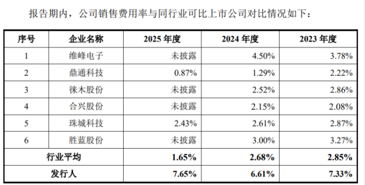 此外,公司的销售用度率也高于行业平均水平。2025年,其销售用度率达到7.65%,进步同业业平均值约6个百分点。公司称用度增长主要系拓展国表里阛阓、参与行业展会所致。