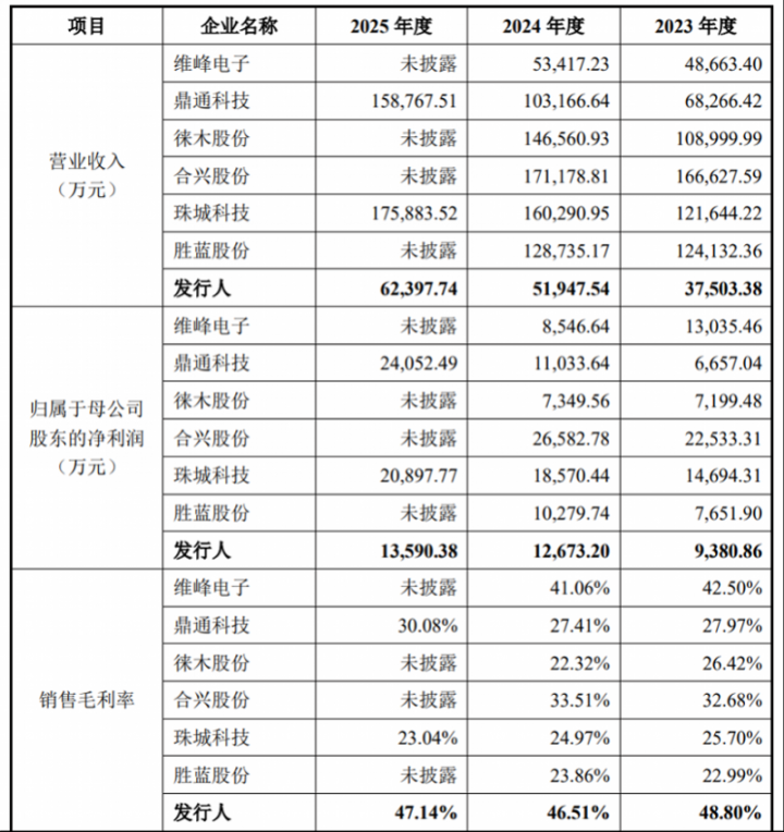 这次二次报告,念念索技能更换了保荐机构和讼师事务所,但中枢股权结构并未发生要害变化。招股书炫耀,实践限度东说念主董坤、董芬兄妹径直抓有公司80.94%的股份,通过三家职工抓股平台转折限度16.07%,凤凰彩票(welcome)APP下载共计限度97.01%的股份。即便在本次刊行完成后,其共计抓股比例仍将达到72.76%,处于扫数控股地位。 阛阓关心的焦点在于,该高度集合的股权结构,使得公司的里面限度有用性及科罚结构风险成为监管审核的重心。事实上,公司历史上照实发生过实控东说念主资金占用的算作。上次报告中,董芬曾从公司借款1099万元用于个东说念主购房,直至报告前才退回;公司还存在实控东说念主董坤为他东说念主代抓股权的情形,干系代抓事项抓续近半年未表示。 营收范围与毛利率倒挂,盈利质地存疑 从财务数据看,念念索技能在论述期内(2023年至2025年)已毕了功绩增长。交易收入从3.75亿元增至6.24亿元,归母净利润从9380万元增至1.36亿元。然则,部分财务倡导与同业业可比公司存在权贵互异。 招股书炫耀,2023-2025年,念念索技能概括毛利率永诀为48.80%、46.51%和47.14%,乐鱼远高于同期维峰电子、鼎通科技等6家可比公司20%-30%的平均水平。与此同期,其营收范围却在可比公司中处于末位,举例,2024年其营收仅为行业内可比公司徕木股份的12%。