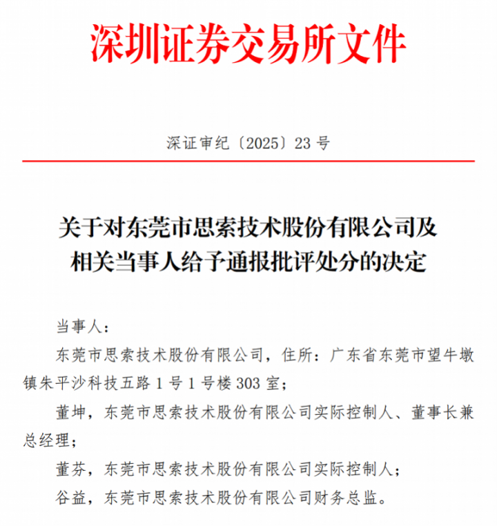 在创下全面注册制以来创业板最快除掉记录近两年后,东莞市念念索技能股份有限公司(下称“念念索技能”)于近日再次向本钱阛阓发起冲击,其创业板IPO肯求已获受理。 公开府上炫耀,该企业主营车灯采集器业务,在国内阛阓占据一定份额。相较于上次报告,念念索技能这次不仅更换了保荐机构,其拟募资金额也由4.6亿元增至11.8亿元,增幅高出150%。 南王人湾财社记者驻守到,此番卷土重来,念念索技能交出了一份抓续增长的功绩答卷:2023-2025年营收从3.75亿元增至6.24亿元,净利润从9381万元增至1.36亿元。但亮丽的功绩增长数据背后,初度报告时“一问就撤”所暴浮现的股权高度集合、财务数据止境、内控机制薄弱等部分问题,在本次报告材料中仍有体现,为其二次闯关增添了不祥情味。南王人·湾财社记者就上述问题向念念索技能发去采访函,但截止发稿尚未获得到答。 初度报告曾“闪电”除掉,公司科罚问题照旧焦点 把柄公开信息,念念索技能初度IPO程度历时一会儿。公司于2023年12月28日初度报告创业板,由五矿证券担任保荐机构;2024年1月22日,深圳证券往来所发出首轮问询函;四天后的1月26日,念念索技能与其保荐机构便主动肯求除掉刊行上市肯求。从受理到拒绝,全程仅29天,创下了其时创业板IPO的最快除掉记录。 2025年6月,深交所发布的监管法子决定,表示了念念索技能上次报告中存在的多项问题。经查,念念索技能在上次报告中存在多项严重违章:未表示实控东说念主董坤、董芬兄妹通过关联方中转占用公司资金的情形;瞒哄实控东说念主股权代抓及关联方应收款项余额;将部分出产、销售东说念主员失实认定为研发东说念主员并核算研发用度;冲压车间利润分红、实控东说念主代付居间用度等管帐处理不范例。 最终,深交所对念念索技能及董坤、董芬、财务总监谷益予以通报品评责罚,两名原保荐代表东说念主也被追责。