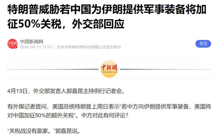 当地时间4月12日,好意思国总统特朗普公开告诫称,若中国在中东梗阻中向伊朗提供军事挽救,好意思方将对中国输好意思商品加征高达50%的袭击性关税。 他借伊朗议题给中国贴“安全标签”,把地缘梗阻硬转成生意施压器用。 特朗普的表述听上去“对统共国度一视同仁”,但试验里,能被50%关税确凿打疼的,恰正是对好意思出口限制大、产业链遮蔽广的国度。 伊朗仅仅“引线”,确凿被摆上洽商桌的,时常是中好意思经贸。 这类操作好意思国并不生分,当凭证不实时,用“国度安全”“谍报评估”填空;当端正不好用时,用“单边加税”替代多边能力。